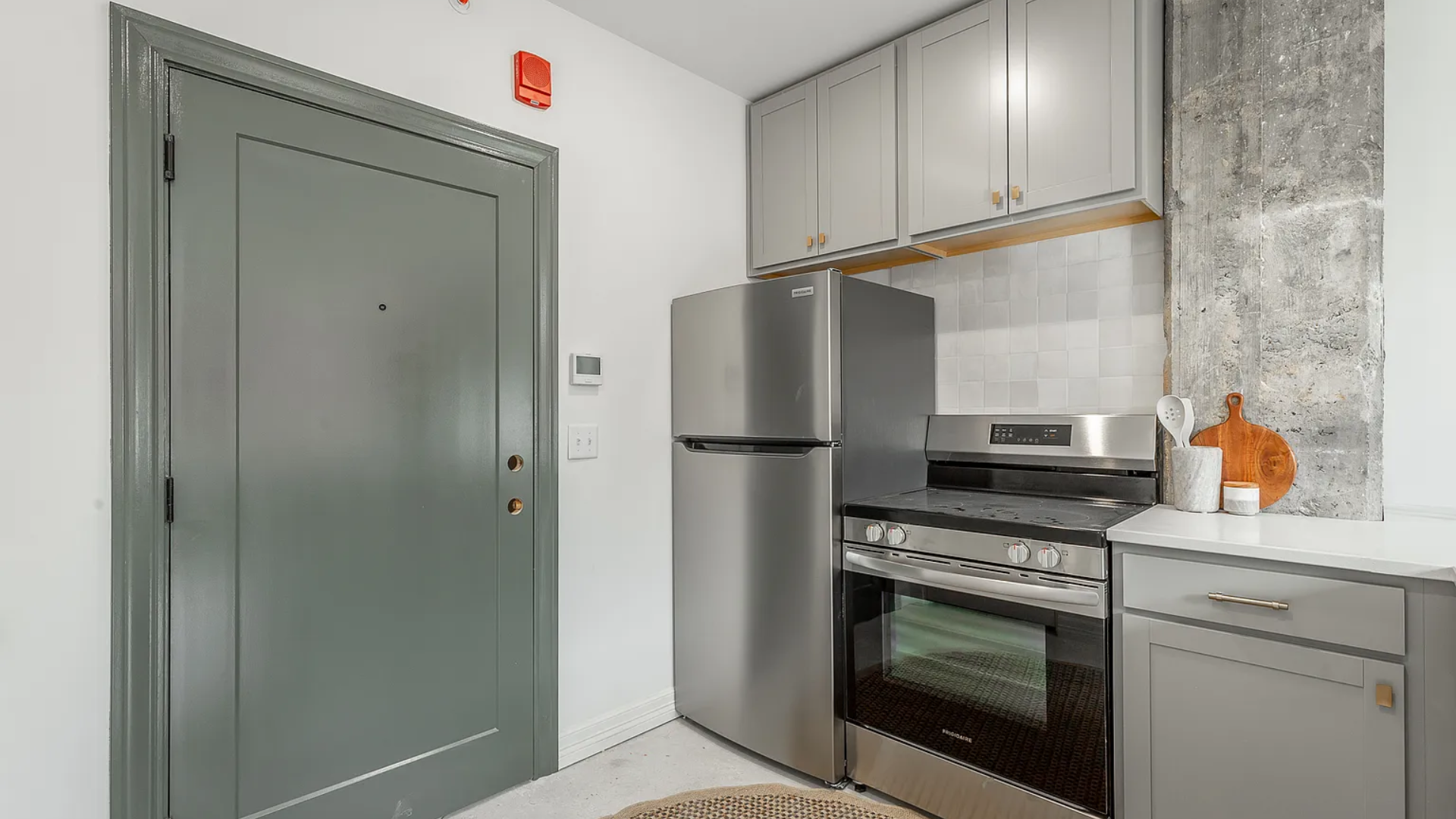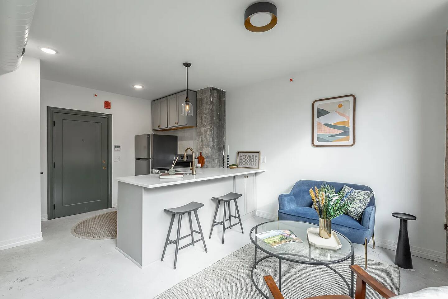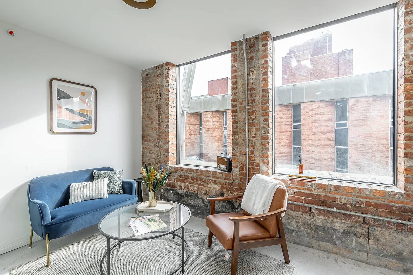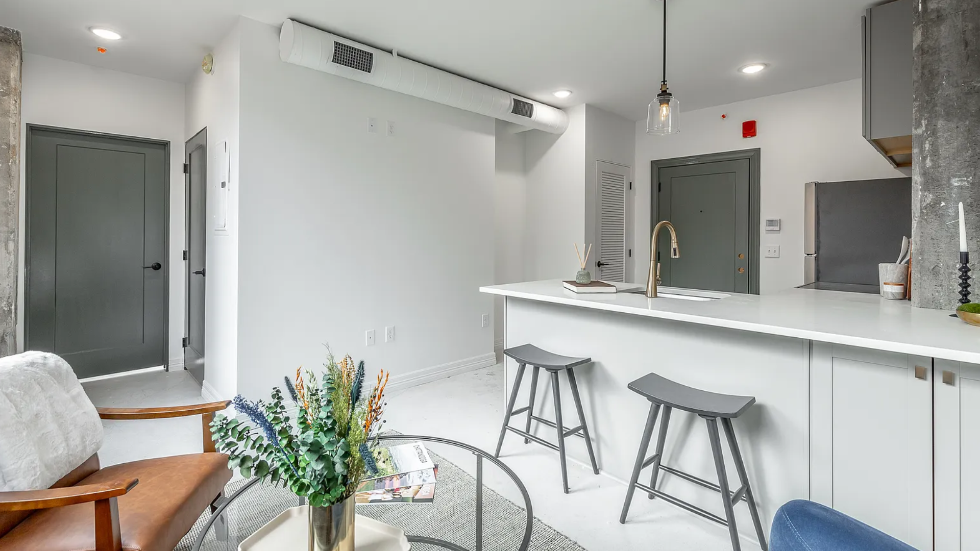 This downtown condo features a comfortable and practical layout designed for small groups and business travelers. • 2 bedrooms and 2 full bathrooms • Split-bedroom layout that provides added privacy between rooms • Open living and dining area with large windows and natural light • Full kitchen for preparing meals or quick breakfasts • Located on the 2nd floor with elevator and stair access The condo has recently been updated with refreshed finishes and design improvements. The current photos reflect the unit prior to these updates. New photos will be added once they are available. The building is newer and some units may still be completing final construction. Guests should expect normal city sounds and occasional daytime activity in common areas.